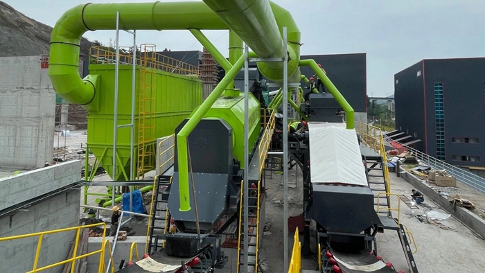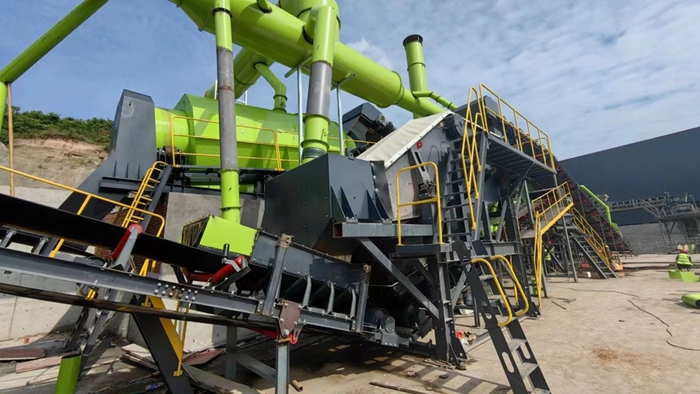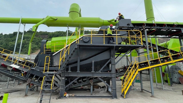 核心設備:鵝頸式輕型板喂機和中型板喂機,全密封輸送帶,負壓臥式風選機、階梯棒條篩、人工+智能化機器人聯合分揀平臺、雙軸撕裂機、除鐵器、除塵器等。